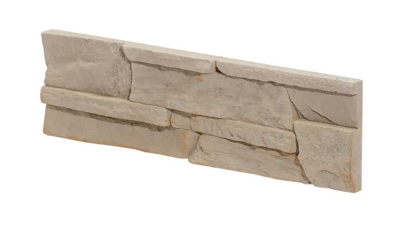 Mrazuvzdorné. Obklad vo farbe beige av imitácii kameňa a hrúbke 22 mm s reliéfnym povrchom. Vhodné do interiéru aj exteriéru.