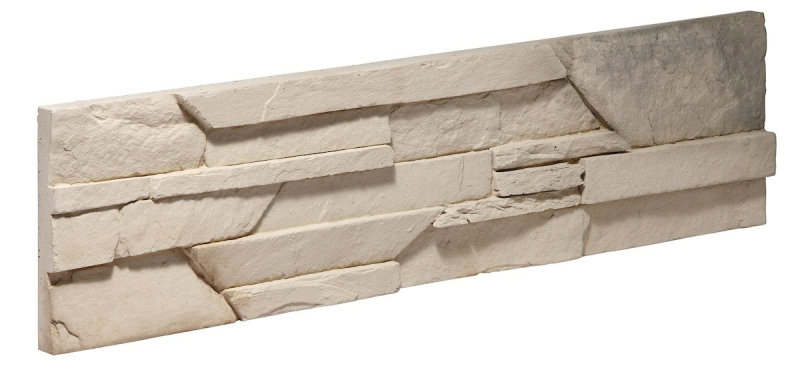 Kamenný obklad z betónu svojim vzhľadom a štruktúrou verne imituje prírodný kameň v šedej farbe o rozmere 14,5x55 cm.