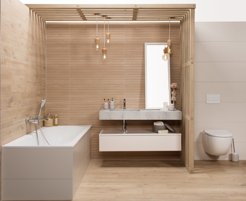 Rektifikovaný obklad v hnedej farbe v imitácii dreva o rozmere 33,3x90 cm a hrúbke 10,5 mm s matným, reliéfnym povrchom. Vhodné iba do interiéru.