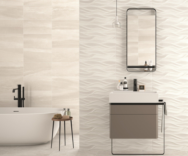 Obklad v bielej farbe v imitácii kameňa s rozmerom 25x50 cm a hrúbkou 9,5 mm s matným povrchom. Vhodné iba do interiéru.