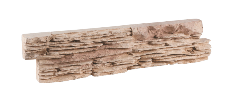 Kamenný obklad z betónu svojim vzhľadom a štruktúrou verne imituje prírodný kameň v hnedej farbe o rozmere 8,8x37,5 cm.