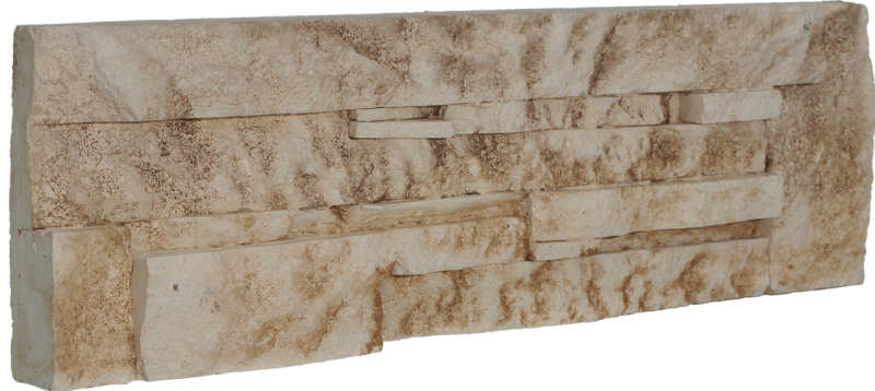 Kamenný obklad z betónu svojim vzhľadom a štruktúrou verne imituje prírodný kameň v hnedej farbe o rozmere 10,7x36 cm.