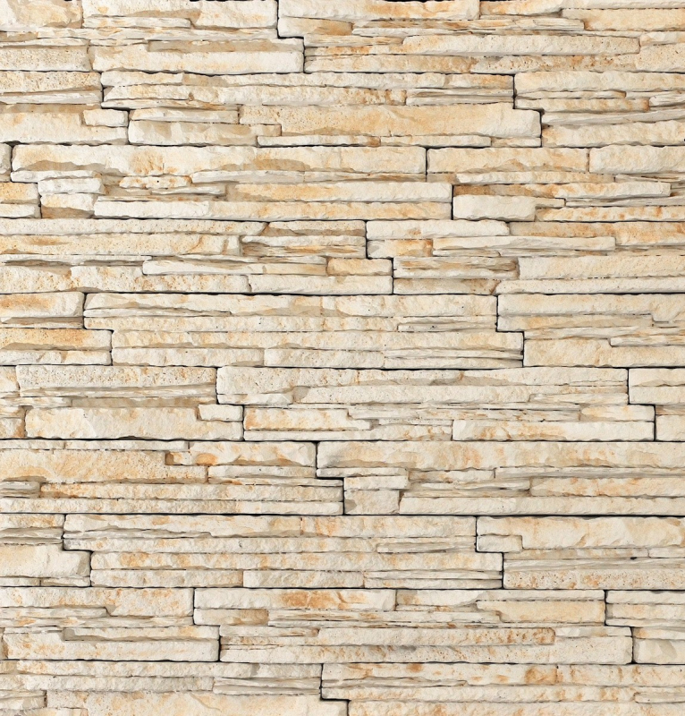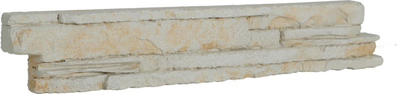 Kamenný obklad z betónu svojim vzhľadom a štruktúrou verne imituje prírodný kameň v bielej farbe o rozmere 6,7x37,5 cm.