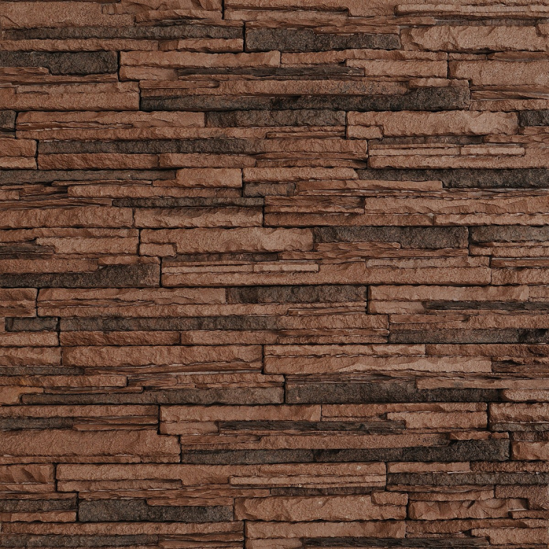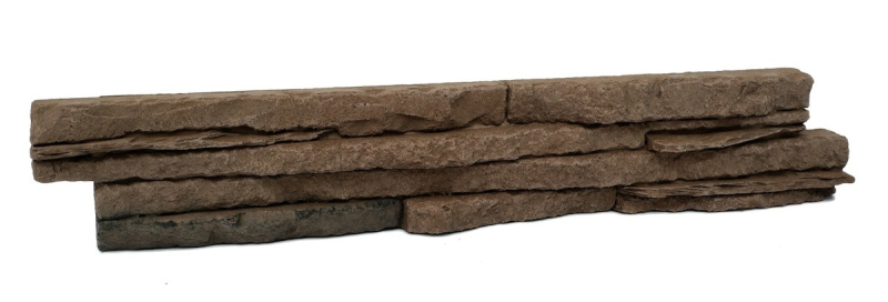 Kamenný obklad z betónu svojim vzhľadom a štruktúrou verne imituje prírodný kameň v hnedej farbe o rozmere 6,7x37,5 cm.