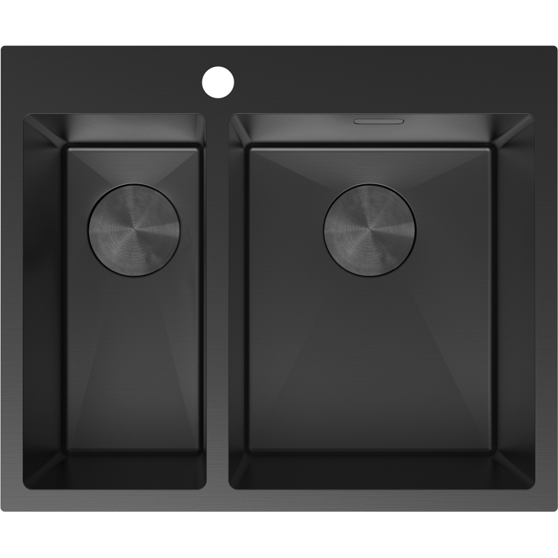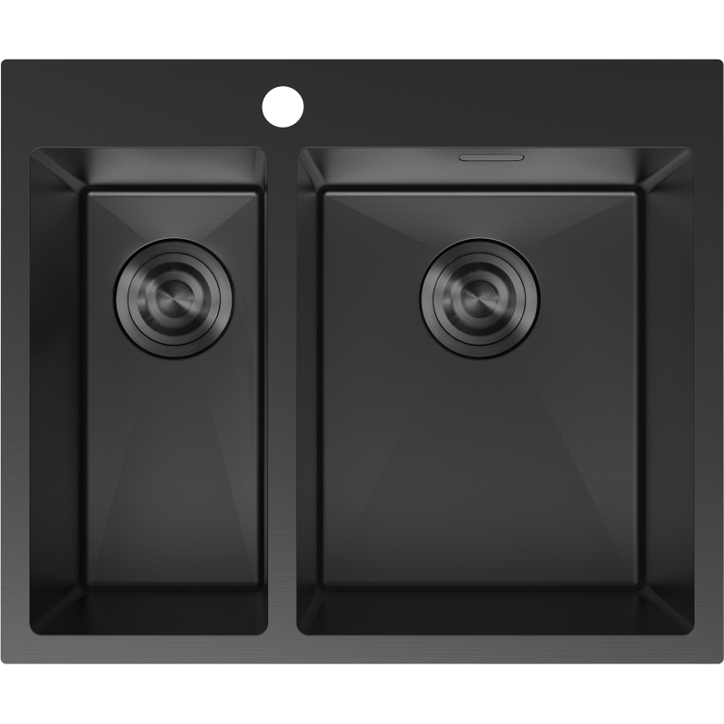 Špecifikácia produktu: Rozmer: 610x510x200 mm Hĺbka drezu: 200 mm Rozmery drezu: 410x335 mm (väčšie), 410x200 mm (menšie) Hrúbka oceľového okraja: 3 mm Hrúbka oceľového okraja drezu: 1 mm Polomer zao ø92 mm Typ: 1,5 palcový drez Typ: Vstavaný Materiál: Nerezová oceľ AISI 304 Farba: Čierna Povrch: Hladký Povrchová úprava sifónu: Čierna Otvor pre prepad: Áno Otvor pre batériu: Áno Ručný sifón s odpadkovým košom a zátkou Prídavný kryt odtoku Odolnosť voči nárazom, poškriabaniu a zmene farby Odolnosť voči vysokým teplotám a tepelným šokom Ľahko čistiteľný povrch