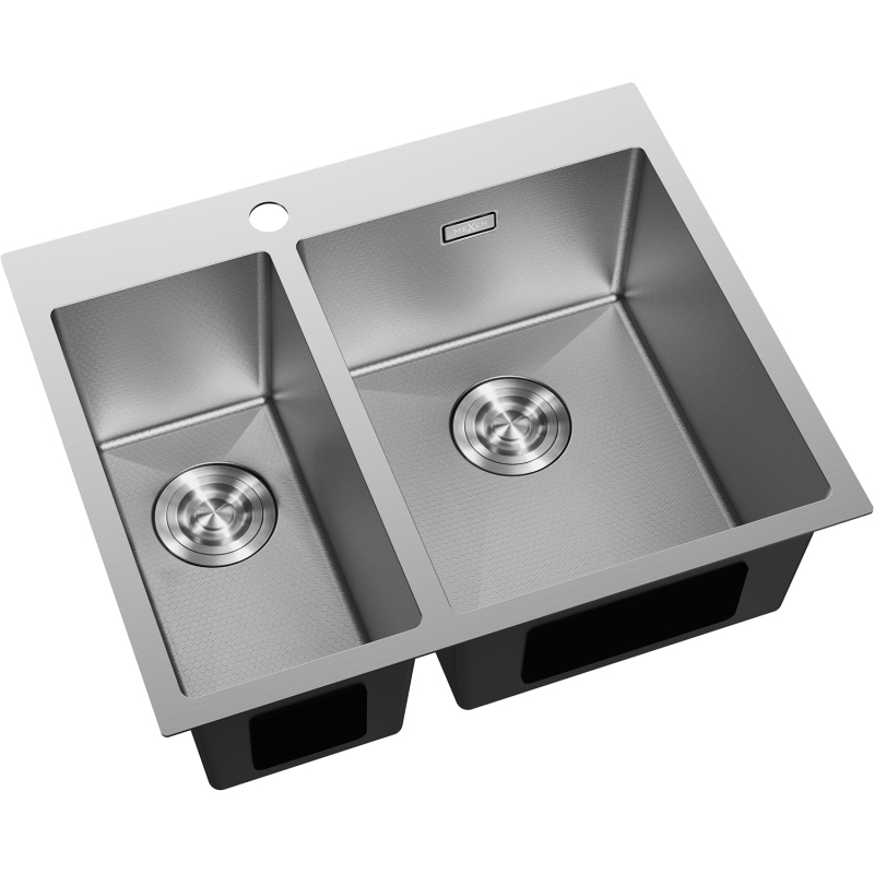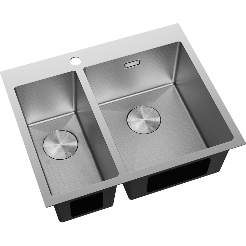 Špecifikácia produktu: Rozmer: 610x510x200 mm Hĺbka drezu: 200 mm Rozmery drezu: 410x335 mm (väčšie), 410x200 mm (menšie) Hrúbka oceľového okraja: 3 mm Hrúbka oceľového okraja drezu: 1 mm Polomer zao ø92 mm Typ: 1,5 palcový drez Typ: Vstavaný Materiál: Nerezová oceľ AISI 304 Farba: Inox Povrch: Voština Povrchová úprava sifónu: Inox Otvor pre prepad: Áno Otvor pre batériu: Áno Ručný sifón s odpadkovým košom a zátkou Prídavný kryt odtoku drezu Odolnosť voči nárazom, poškriabaniu a zmene farby Odolnosť voči vysokým teplotám a tepelným šokom Ľahko čistiteľný povrch