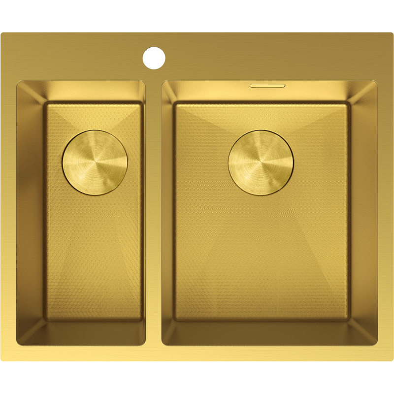 Špecifikácia produktu: Rozmer: 610x510x200 mm Hĺbka drezu: 200 mm Rozmery drezu: 410x335 mm (väčšie), 410x200 mm (menšie) Hrúbka oceľového okraja: 3 mm Hrúbka oceľového okraja drezu: 1 mm Polomer zao ø92 mm Typ: 1,5palcový drez Typ: Vstavaný Materiál: Nerezová oceľ AISI 304 Farba: Zlatá Povrch: Voština Povrchová úprava sifónu: Zlatá Otvor pre prepad: Áno Otvor pre batériu: Áno Ručný sifón s odpadkovým košom a zátkou Prídavný kryt odtoku drezu Odolnosť voči nárazom, poškriabaniu a zmene farby Odolnosť voči vysokým teplotám a tepelným šokom Ľahko čistiteľný povrch