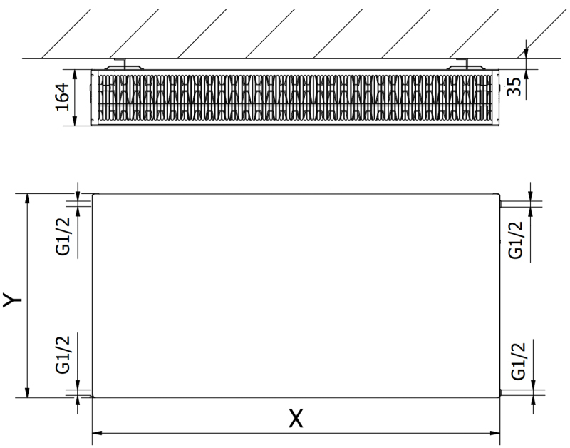 Rozstup zvislých vodných kanálov: 33,3 mm