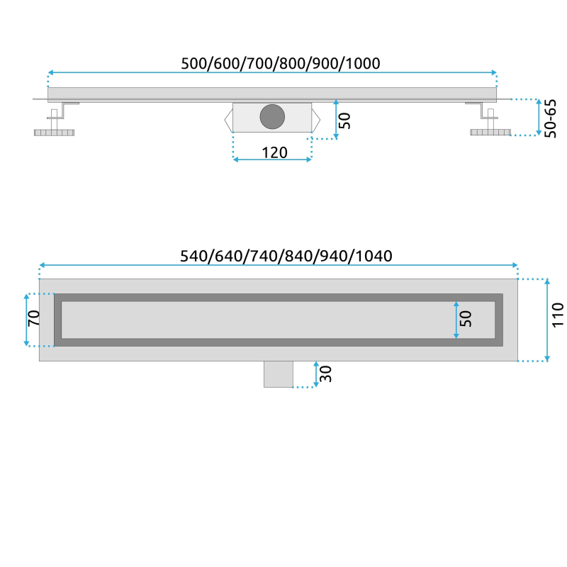Líniový odtok Neox je modernou náhradou tradičných sprchových vaničiek. Vyrobený z nerezovej ocele AISI 304 najvyššej kvality. Tento materiál sa vyznačuje výnimočnou odolnosťou proti vlhkosti, korózii a mechanickému poškodeniu, čo zaručuje dlhú a bezproblémovú životnosť. Maska odtoku je obojstranná - z jednej strany hladká az druhej prispôsobená na vloženie dlažby, čo umožňuje dokonalé zladenie s dizajnom kúpeľne. Vďaka tomuto riešeniu zostáva odtok nenápadný a sprchová zóna získava minimalistický a elegantný charakter. Použitý sifón s vysokou prietočnosťou zaisťuje efektívny odvod vody a jednoduchá demontáž vnútorných častí uľahčuje čistenie a údržbu.