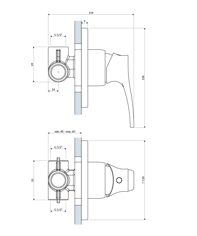Omnires ART DECO podomietková sprchová batéria, chróm lesk AD5145CR