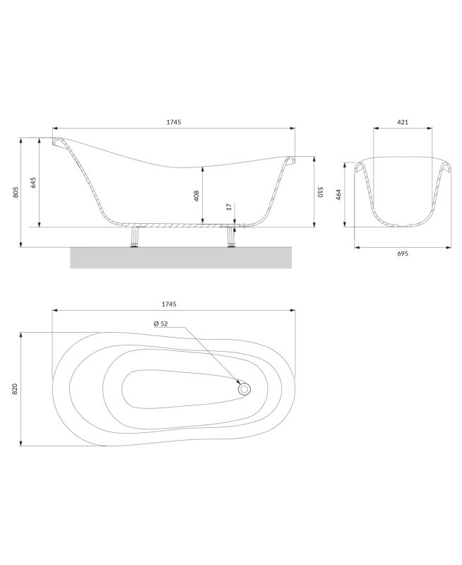 Omnires ATENA COMFORT M+ voľne stojaca vaňa, 175 x 82 cm, biely/čierny lesk ATENA174BCP