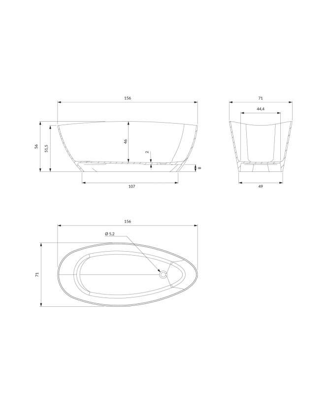 Omnires BARCELONA M+ voľne stojaca vaňa, 156 x 71 cm, biely/čierny lesk BARCELONA156BCP
