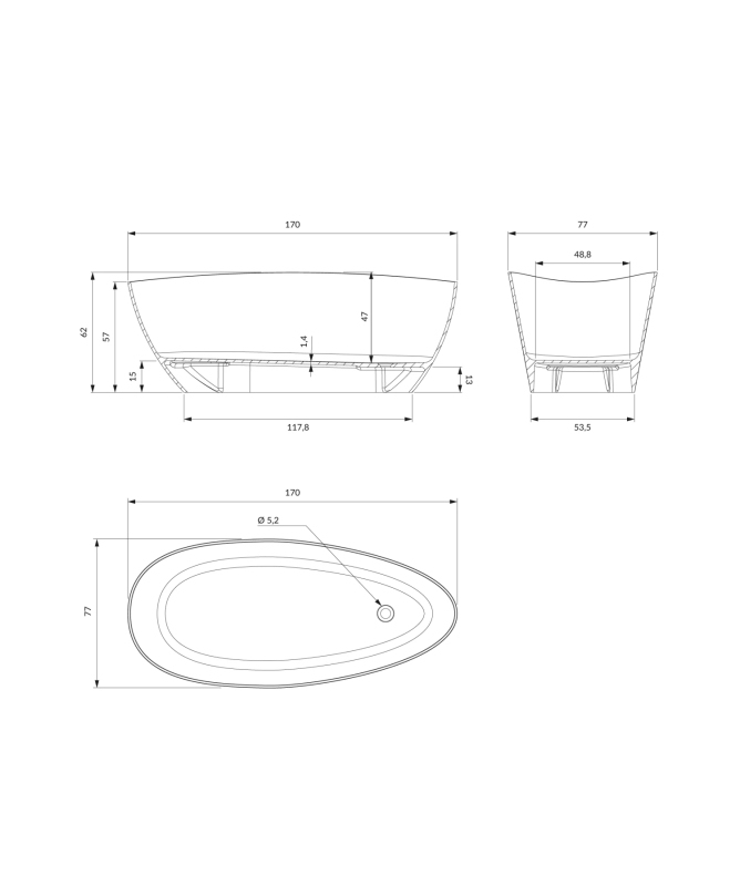 Omnires BARCELONA M+ voľne stojaca vaňa, 170 x 77 cm, biely/čierny lesk BARCELONAXLBCP