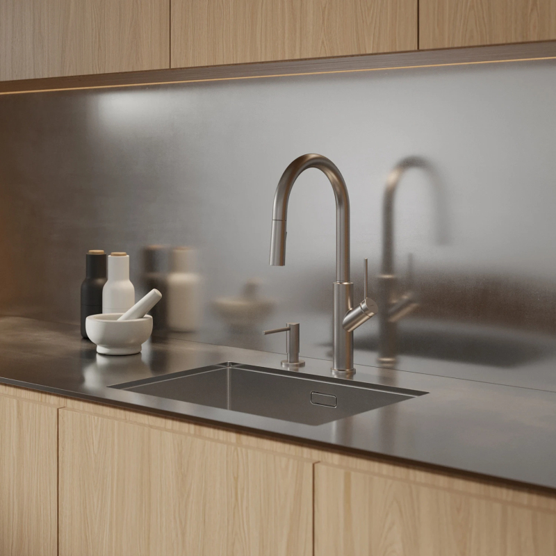 Omnires Bend kuchynská batéria s výsuvným výpustom kartáčovaný nikel BE6455NI