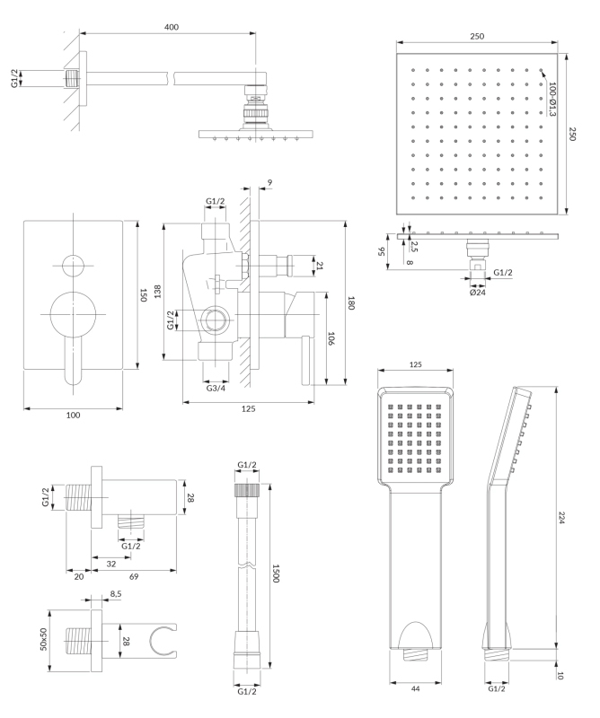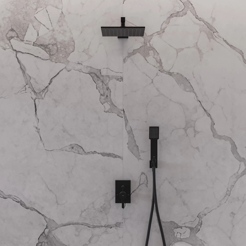 Táto sada je ideálna pre každého, kto si praje čistý vzhľad kúpeľne bez viditeľných prvkov inštalácie a preferuje moderný a elegantný sprchovací priestor. Farba prevedenia je pololesklá čierna , ktorá skvele zapadne do minimalistických, kontrastných i industriálne ladených kúpeľní.