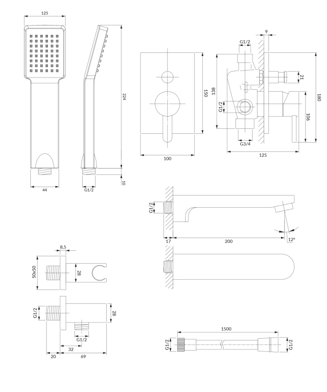Omnires Y päť otvorová podomietková vaňová batéria, biely mat Y1237-1SWM