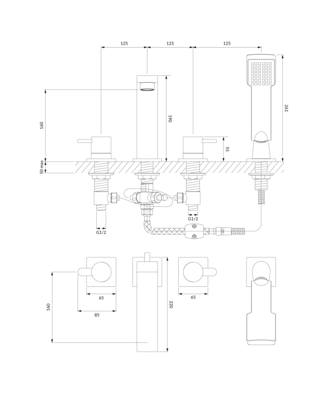 Omnires DARLING štvorotvorová vaňová batéria, chróm lesk DA5032CR