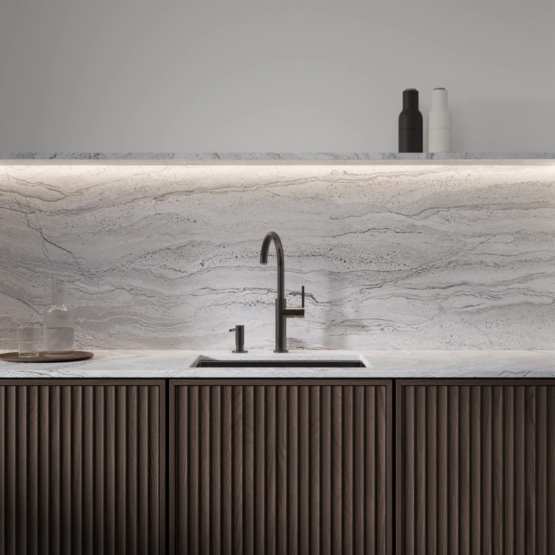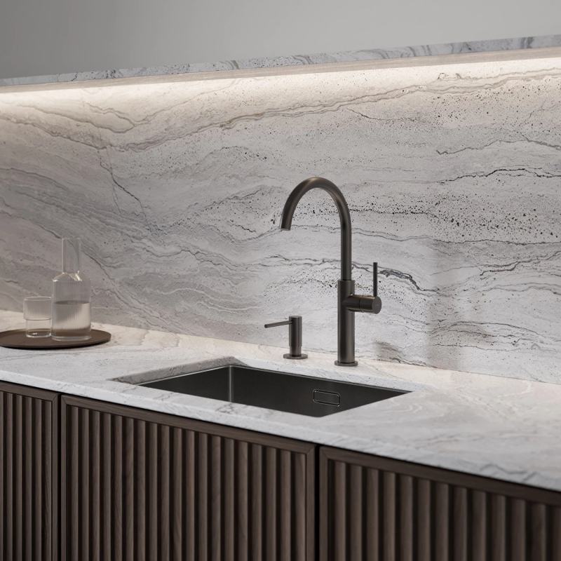 Dávkovač tekutého mydla, navrhnutý tak, aby pozdvihol každodenné rituály ako v kuchyni, tak v kúpeľni, ponúka dokonalú rovnováhu medzi funkčnosťou a štýlom. Pomáha udržiavať poriadok a zároveň zaisťuje pohodlie a flexibilitu usporiadania. Jeho všestranná inštalácia – či už na pracovnej doske, umývadle alebo kuchynskom dreze – poskytuje plnú voľnosť v dizajne. Dávkovač je starostlivo zladený s farebnými úpravami OMNIRES, ktorý sa bezproblémovo integruje do vášho interiéru, zatiaľ čo jeho ergonomický dizajn zaručuje rýchly a bezproblémový prístup k mydlu alebo prostriedku na umývanie riadu kedykoľvek je to potrebné.