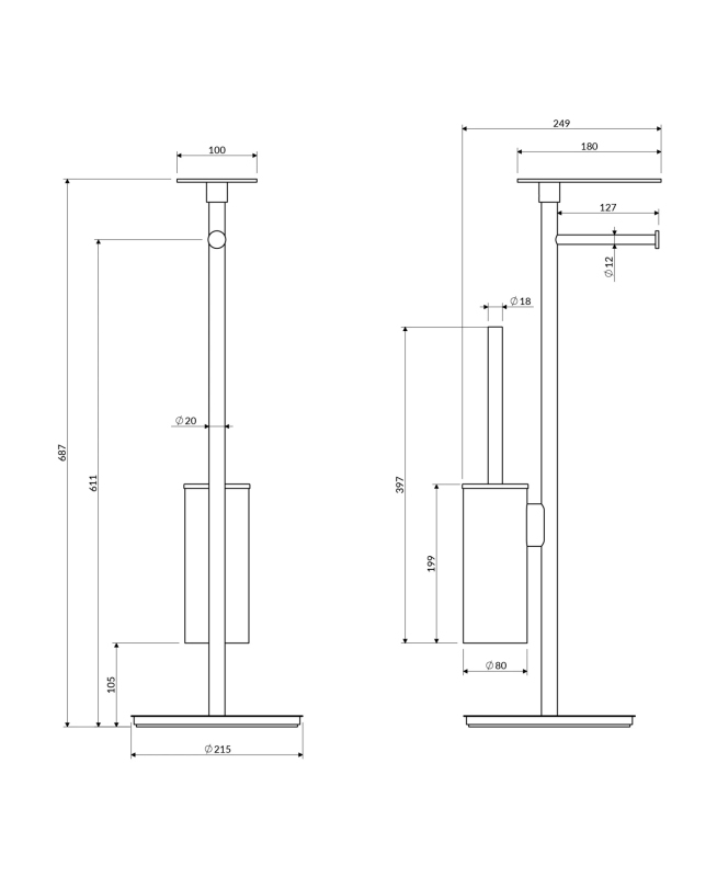Multifunkčný toaletný stojan je vyrobený z odolnej nerezovej ocele a ponúka praktické riešenie pre optimálnu organizáciu priestoru. Stojan kombinuje funkčnosť toaletnej kefy, držiaka toaletného papiera a integrovanej poličky, takže všetko nevyhnutné príslušenstvo je úhľadne na jednom mieste. Polička poskytuje praktické miesto na hygienické potreby alebo drobné predmety, čím zvyšuje pohodlie pri každodenných rituáloch a eliminuje nutnosť inštalácie ďalšieho príslušenstva.