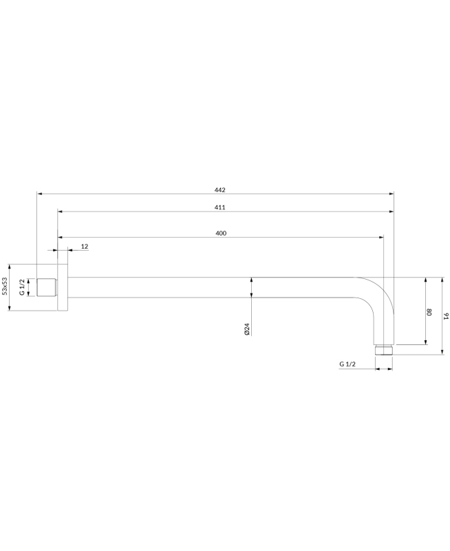 Omnires — nástenné sprchové rameno, 40 cm, chróm lesk RA01K-XCR