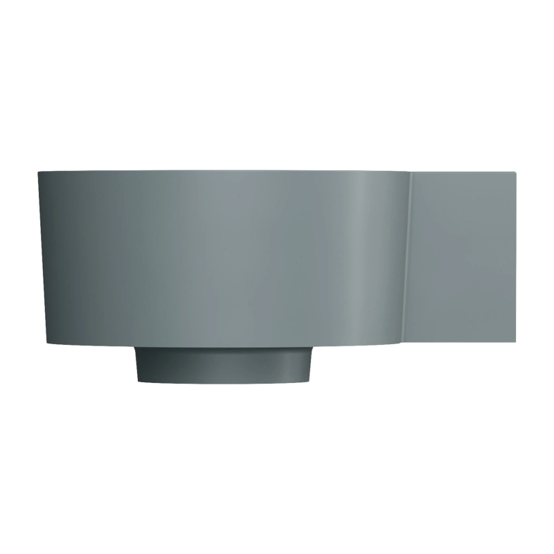 Umývadlo OVO v popolavosivej farbe (RAL7022) má zamatovo matný povrch v elegantnom, teplom šedom odtieni.