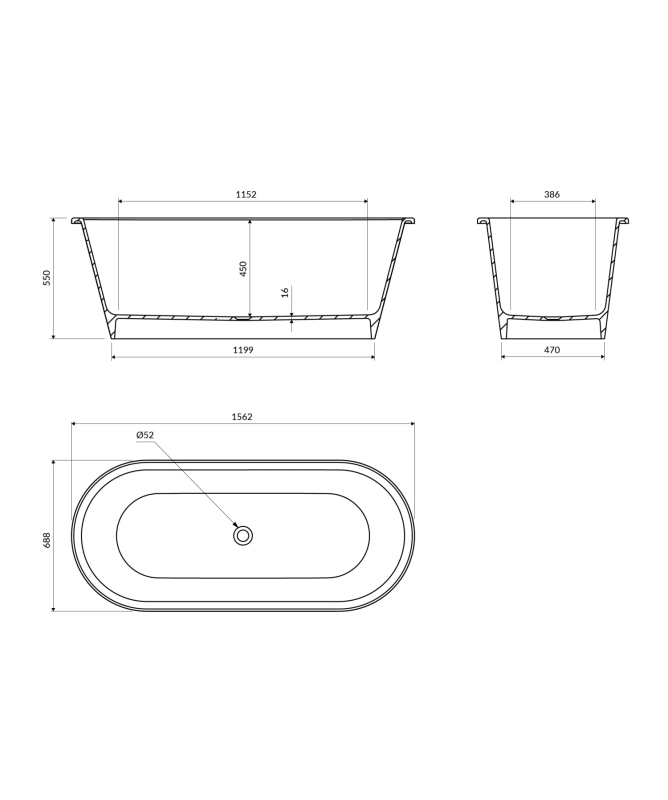 Omnires PARIS M+ voľne stojaca vaňa, 156 x 69 cm, biely lesk PARIS156BP