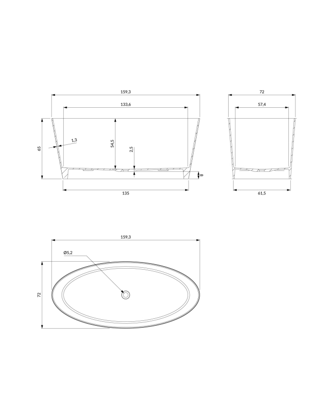 Omnires ROMA M+ voľne stojaca vaňa, 159 x 72 cm, biely lesk ROMA159BP