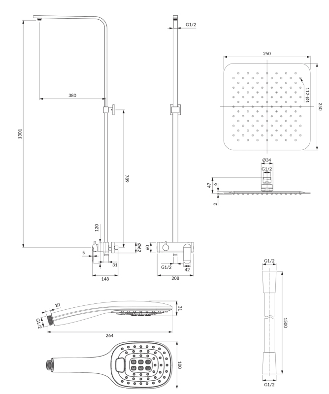 Omnires SACRAMENTO nástenný sprchový systém, chróm lesk SC2344CR