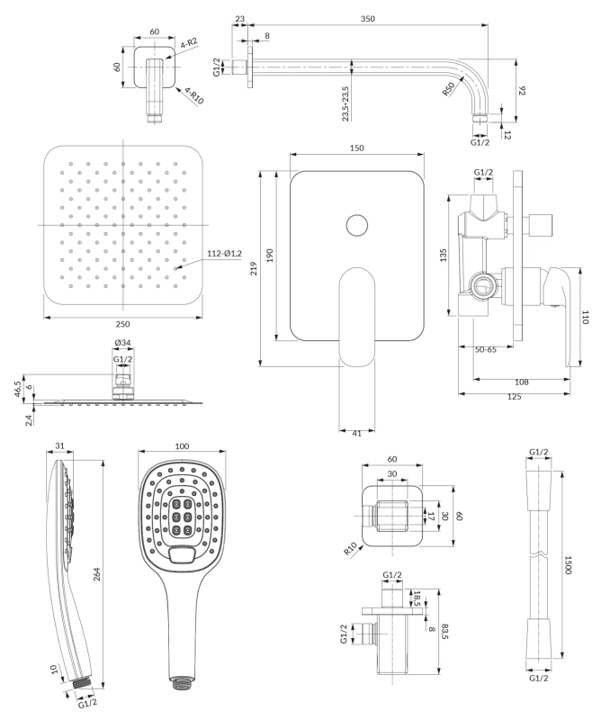Omnires SACRAMENTO podomietkový sprchový systém, chróm lesk SYSSC10XCR