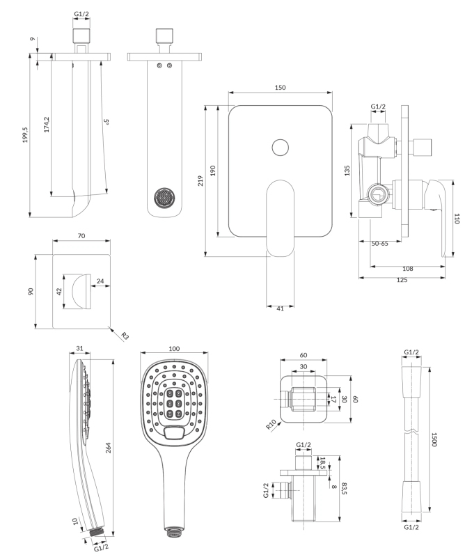 Omnires SACRAMENTO podomietkový vaňový systém, čierny mat SYSSCW01BL