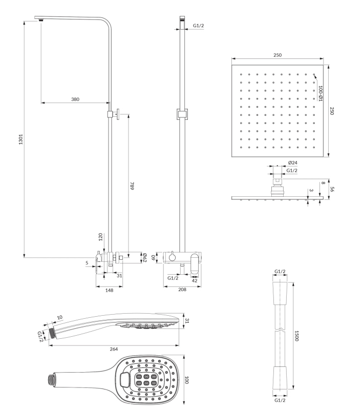 Omnires SACRAMENTO sprchový set s batériou, čierna SC2344BL
