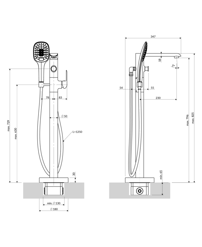 - dosah výtoku: 23 cm, výška odtoku vody: 79,8 cm, celková výška kohoutku: 82,6 cm
