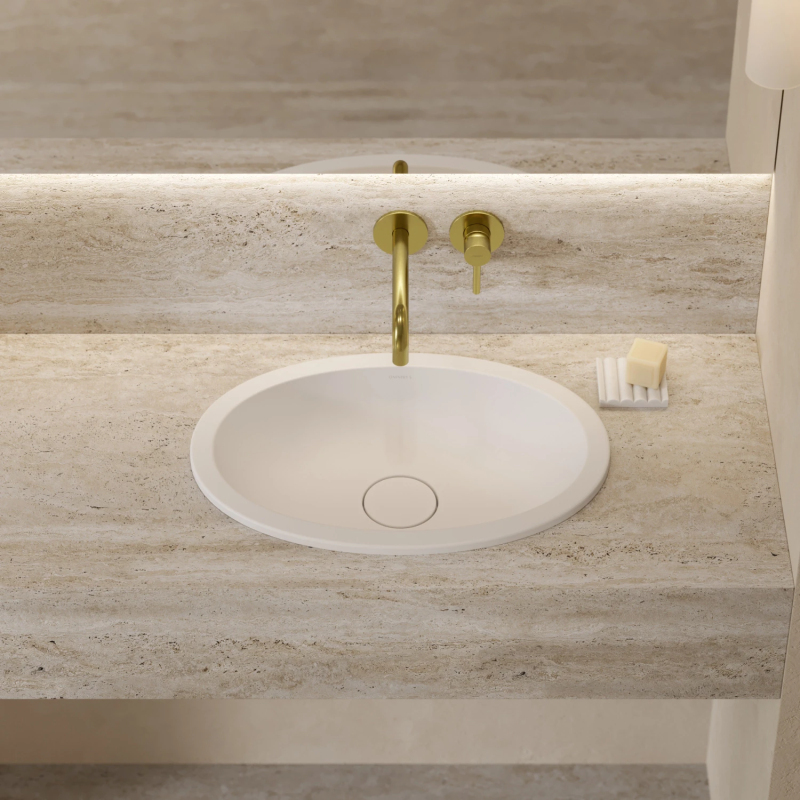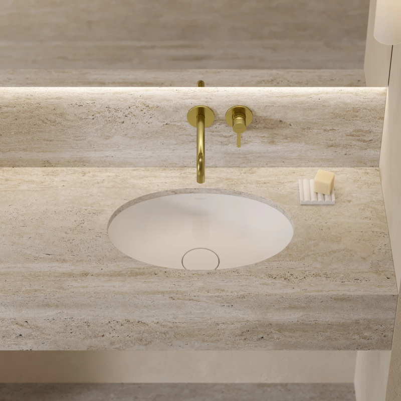 Umývadlo pod dosku z kolekcie OMNIRES SHELL M+ má elegantný, moderný eliptický dizajn, ktorý sa jemne zužuje smerom ku dnu. Jeho optimálne rozmery sú ideálne pre kúpeľne s jednoduchými aj dvojitými umývadlami. Presne navrhnutý okraj umožňuje montáž umývadla pod pracovnú dosku, čo zaisťuje hladký a jednotný povrch. Alternatívne je možné umývadlo inštalovať v jednej rovine s pracovnou doskou, pričom na povrchu je viditeľný iba minimalistický okraj. Obe montážne riešenia nielen uľahčujú každodennú starostlivosť, ale aj optimálne využívajú priestor, vďaka čomu je umývadlo ideálnou voľbou pre moderné a minimalistické interiéry.
