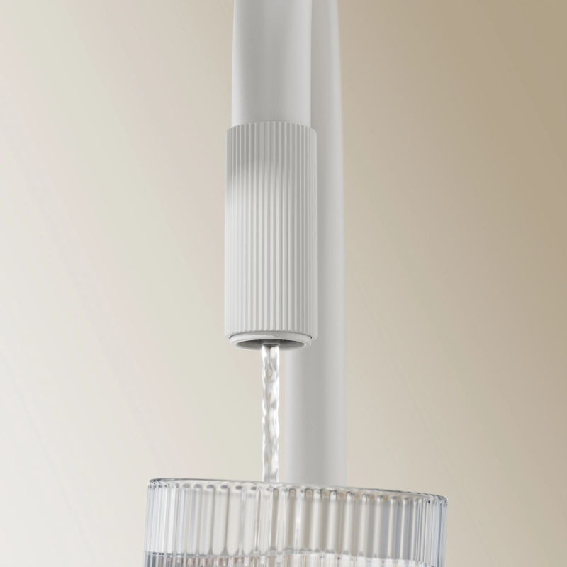 Kuchynská batéria SWITCH kombinuje minimalistický dizajn, ktorý vychádza z vyvážených proporcií, s praktickou funkčnosťou, ktorá poskytuje bežnú aj filtrovanú vodu. Jasne definované a precízne spracované detaily umožňujú intuitívne použitie smerovaním do dvoch oddelených prúdov vody: bežnej vody blízko páky a filtrovanej vody na konci výtoku – stačí otočiť rebrovaným krúžkom výtoku a rýchlo si naplníte pohár lahodne čerstvou pitnou vodou. Otočný vyťahovací výtok ďalej vylepšuje funkčnosť kuchynskej batérie a ponúka dlhší dosah a voľnosť pohybu okolo drezu. Zjednodušuje oplachovanie, umývanie a napúšťanie a zároveň umožňuje dôkladné čistenie celej pracovnej plochy.