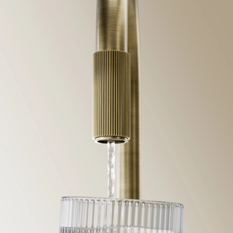 Kuchynská batéria SWITCH kombinuje minimalistický dizajn, ktorý vychádza z vyvážených proporcií, s praktickou funkčnosťou, ktorá poskytuje bežnú aj filtrovanú vodu. Jasne definované a precízne spracované detaily umožňujú intuitívne použitie smerovaním do dvoch oddelených prúdov vody: bežnej vody blízko páky a filtrovanej vody na konci výtoku – stačí otočiť rebrovaným krúžkom výtoku a rýchlo si naplníte pohár lahodne čerstvou pitnou vodou. Otočný vyťahovací výtok ďalej vylepšuje funkčnosť kuchynskej batérie a ponúka dlhší dosah a voľnosť pohybu okolo drezu. Zjednodušuje oplachovanie, umývanie a napúšťanie a zároveň umožňuje dôkladné čistenie celej pracovnej plochy.
