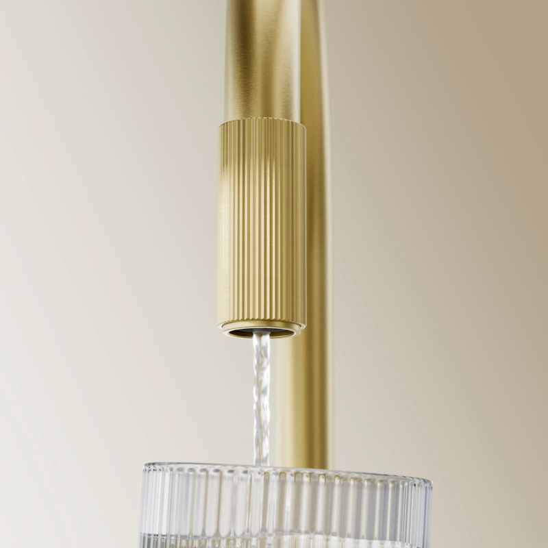 Kartáčovaná mosadz má sofistikovanú povrchovú úpravu s chladným zlatým odtieňom a saténovo kartáčovaným povrchom. Produkt je potiahnutý pokročilou technológiou PVD.