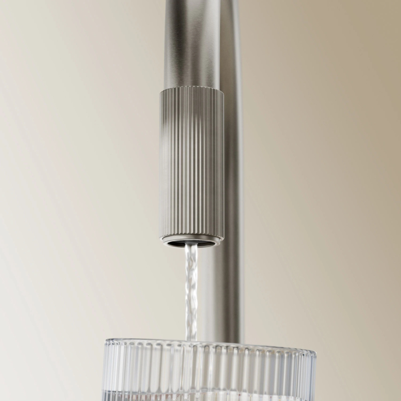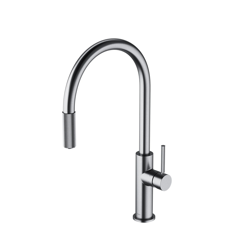 Kuchynská batéria SWITCH kombinuje minimalistický dizajn, ktorý vychádza z vyvážených proporcií, s praktickou funkčnosťou, ktorá poskytuje bežnú aj filtrovanú vodu. Jasne definované a precízne spracované detaily umožňujú intuitívne použitie smerovaním do dvoch oddelených prúdov vody: bežnej vody blízko páky a filtrovanej vody na konci výtoku – stačí otočiť rebrovaným krúžkom výtoku a rýchlo si naplníte pohár lahodne čerstvou pitnou vodou. Otočný vyťahovací výtok ďalej vylepšuje funkčnosť kuchynskej batérie a ponúka dlhší dosah a voľnosť pohybu okolo drezu. Zjednodušuje oplachovanie, umývanie a napúšťanie a zároveň umožňuje dôkladné čistenie celej pracovnej plochy.