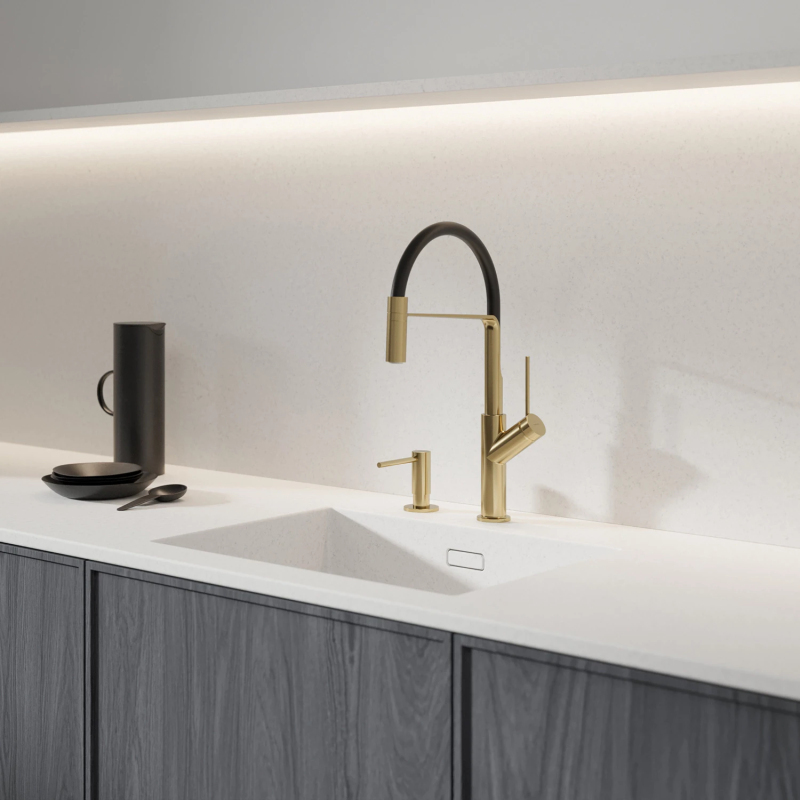 Omnires Vita kuchynská batéria s výsuvným výpustom kartáčovaná mosadz/mat čierna VI6350BLBSB