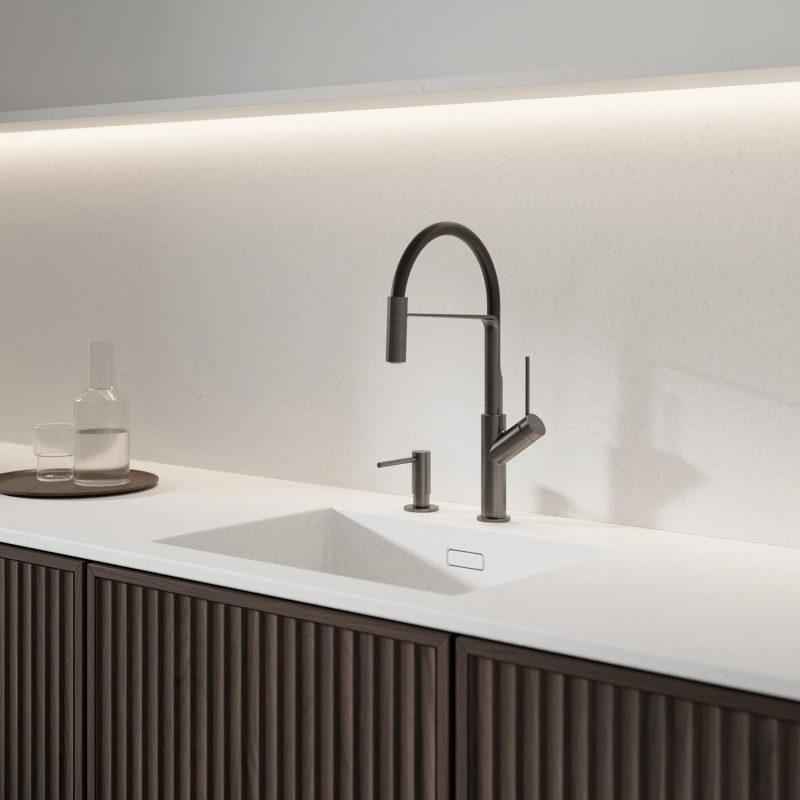 Omnires Vita kuchynská batéria s výsuvným výpustom kartáčovaný grafit/mat čierna VI6350BLGR