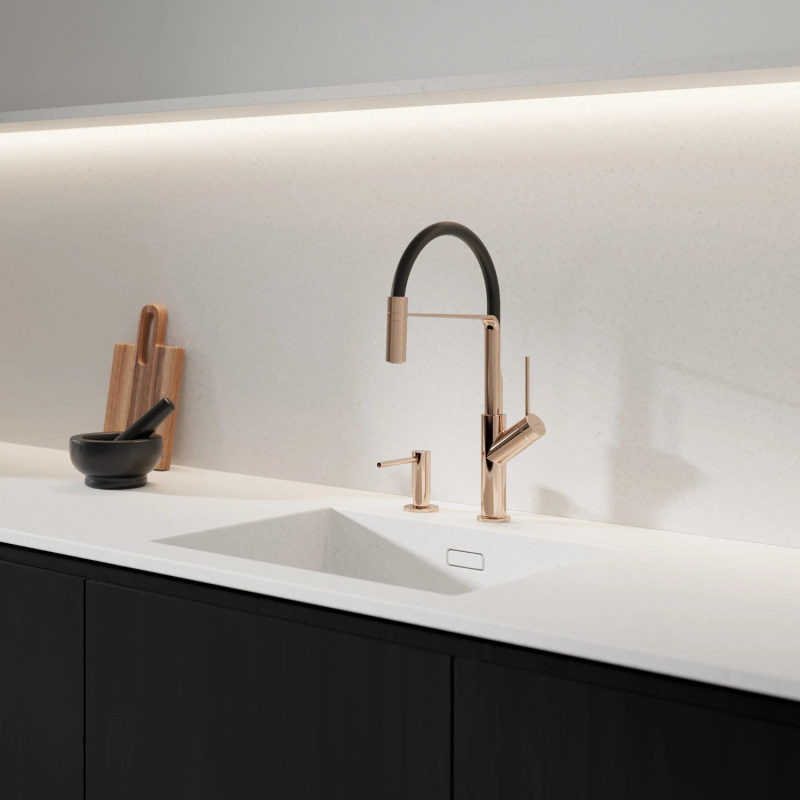 Omnires Vita kuchynská batéria s výsuvným výpustom leštená meď / matná čierna VI6350BLCP