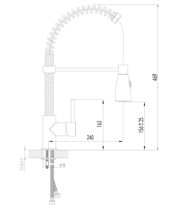 Omnires Vita kuchynská batéria s výsuvným výpustom kartáčovaný grafit/mat čierna VI6350BLGR