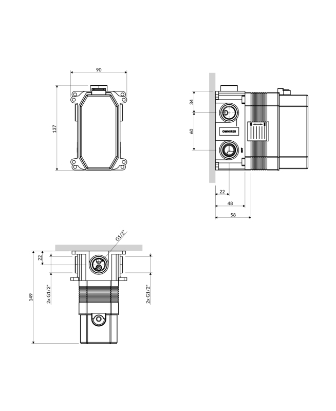 Omnires Y podomietkové teleso sprchovo-vaňové batérie 3cestné BOX48X