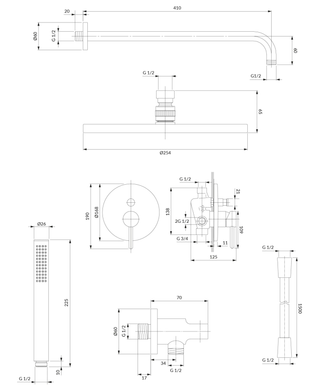 Omnires Y podomietkový sprchový set, brúsený nikel SYSY35NI