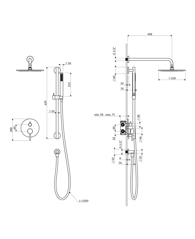 Y | Dvojcestný sprchový systém pre skrytú inštaláciu