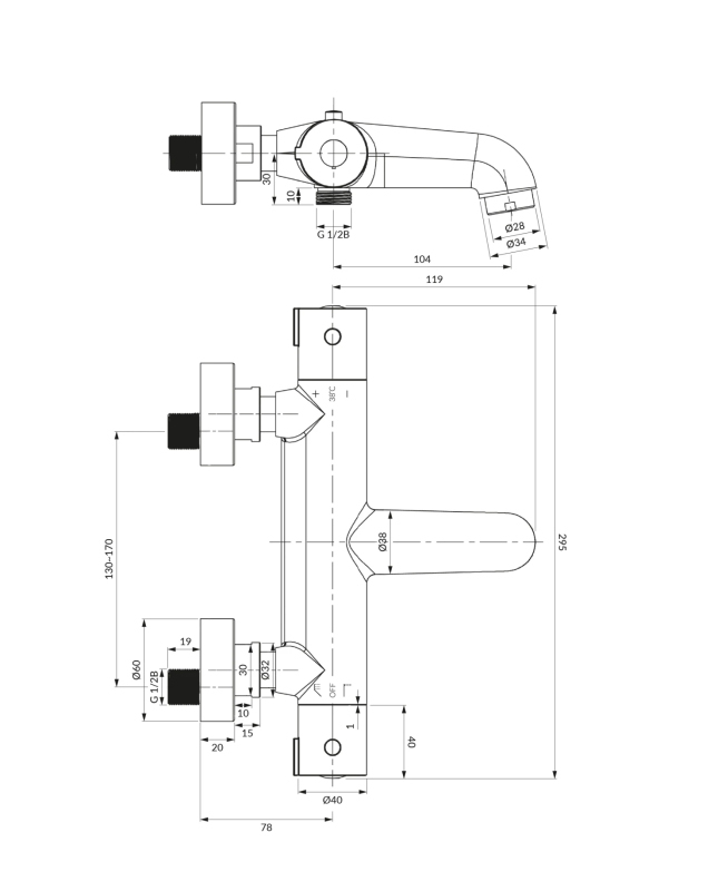 Omnires Y termostatická vaňová batéria, chróm lesk Y1236-NCR