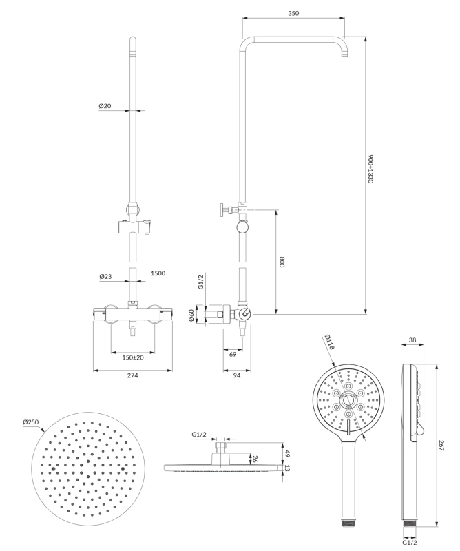 - sprchová hlavice, rozměry: ø25 cm, dosah od zdi: 43 cm