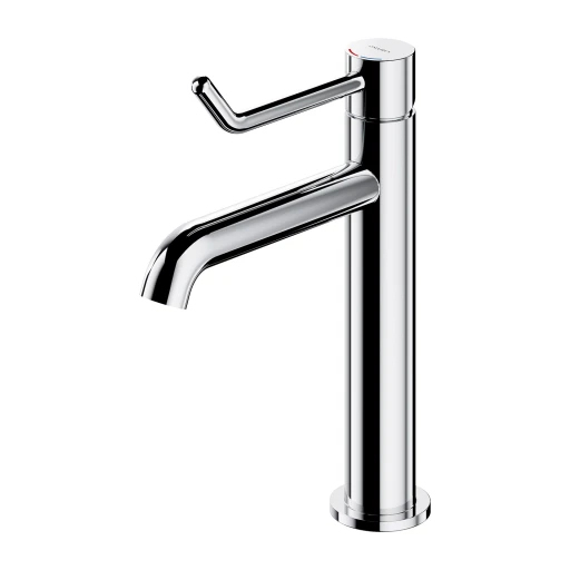 Umývadlová batéria z radu Inclusive Design zvyšuje pohodlie a je skutočne prístupná a intuitívna pre každého užívateľa. Je vybavená predĺženou, ergonomicky tvarovanou pákou, ktorá umožňuje používateľom aktivovať prúd vody rukou, zápästím alebo lakťom. To zaisťuje pohodlie pre osoby s obmedzenou pohyblivosťou a podporuje hygienickú prevádzku v prostrediach so zvýšenými hygienickými štandardmi. Kontrastné farby značenia teplej a studenej vody zlepšujú čitateľnosť a uľahčujú voľbu teploty.