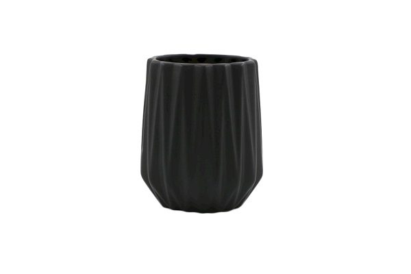 Keramický držák kartáčků o rozměrech 8,8 x 10,7 cm v černé barvě.