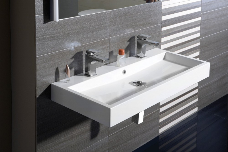 ORINOKO umývadlo 100x42cm, 2 otvory pre batériu, liaty mramor, biela