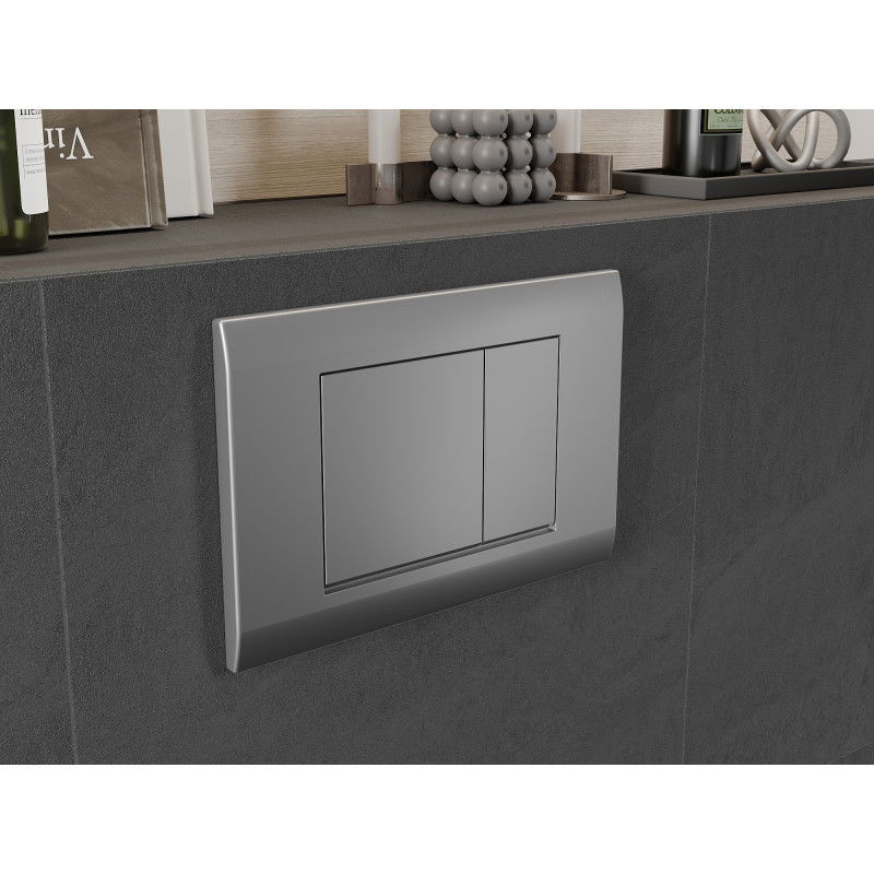 Špecifikácia produktu: Vhodné pre pneumatický rám: Mexen Fenix Air - 6A100, Fenix Air W - 6A105 Farba: Matný chróm Materiál: Plast Mechanizmus: Pneumatický 2 splachovacie okruhy Aktivuje sa stlačením spredu